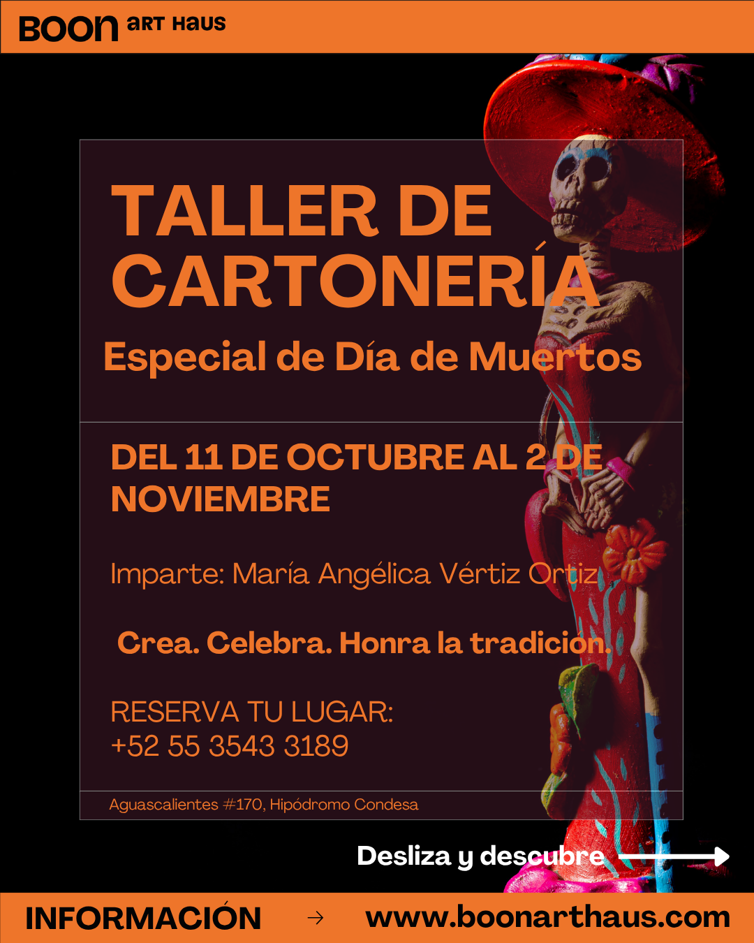 BOON ART HAUS te invita a sumergirte en la rica tradición mexicana de la cartonería en un taller especial dedicado a la celebración del Día de Muertos.